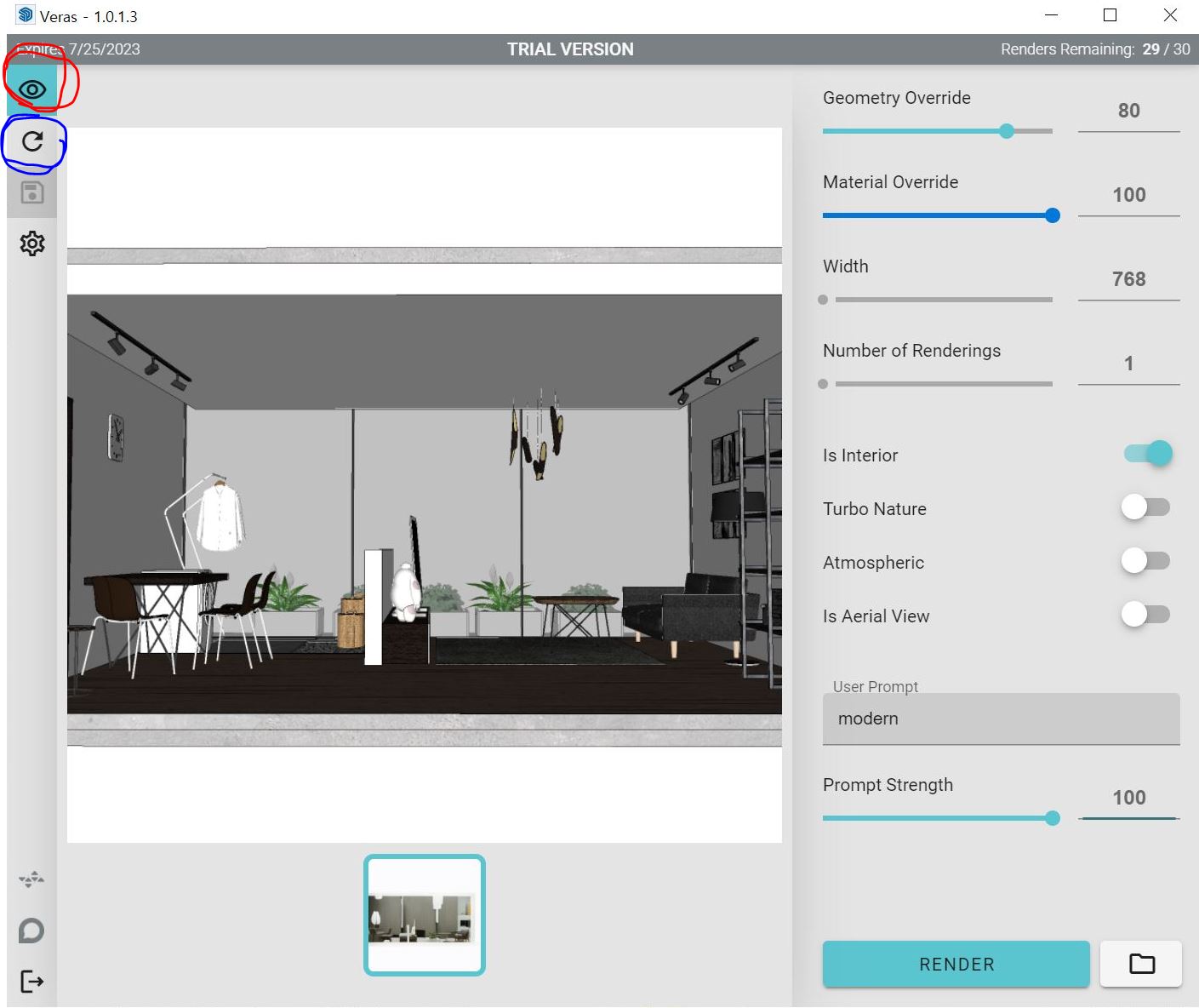 Style Strength : 스케치업에서 Style 탭과 유사합니다. 리터치 스타일 정도로 이해하시면됩니다. 손스케치 느낌에서 현실적인 렌더스타일로 변경시킬수 있습니다.