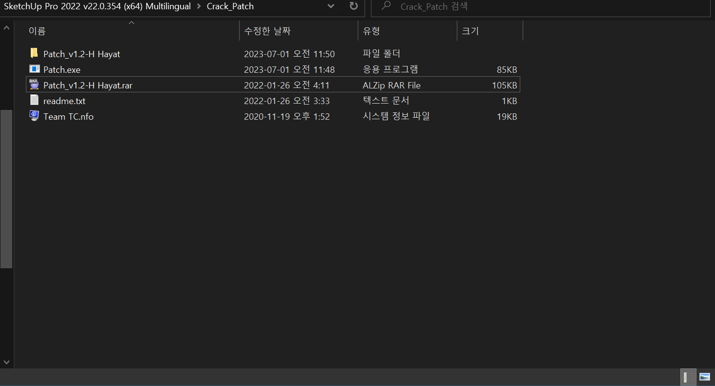 Patch 눌러주시면 되는데요. 스케치업파일은 총 3개의 파일을 크랙해야합니다.