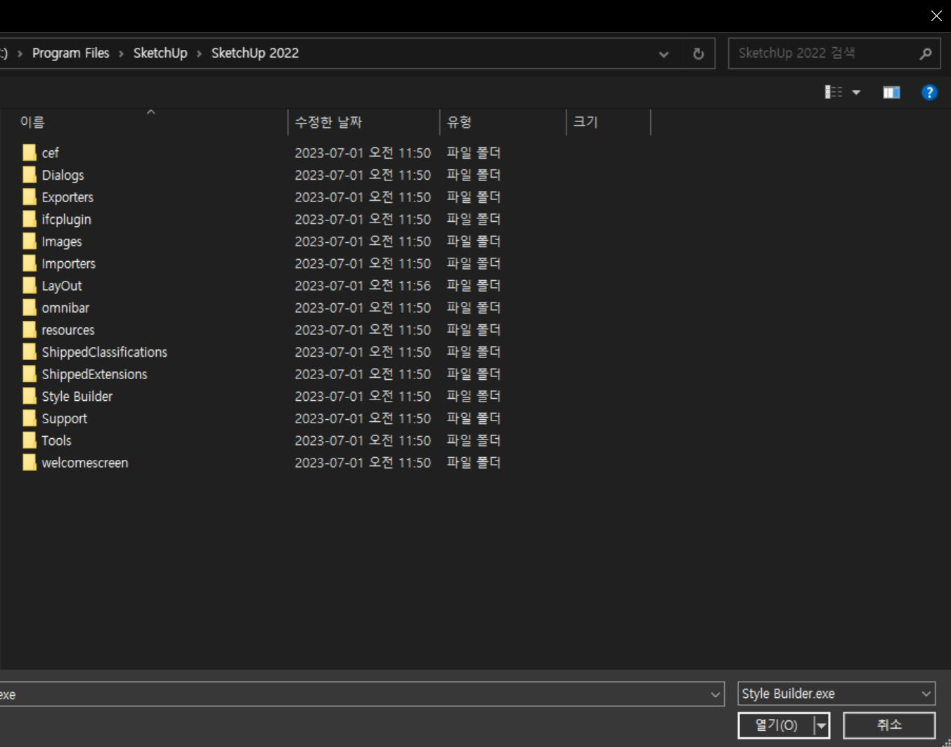 그렇게 각각 스케치업/레이아웃/스타일빌더 에 동일하게 크랙을 해줍니다.