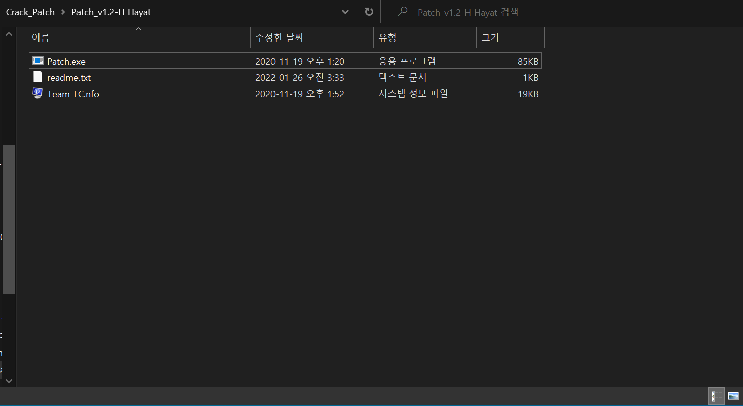 압축 해제한 파일 폴더안에 있는 크랙 패치 파일에서 Patch_v1-H Hayat 파일을 압축 풀기 해주세요.